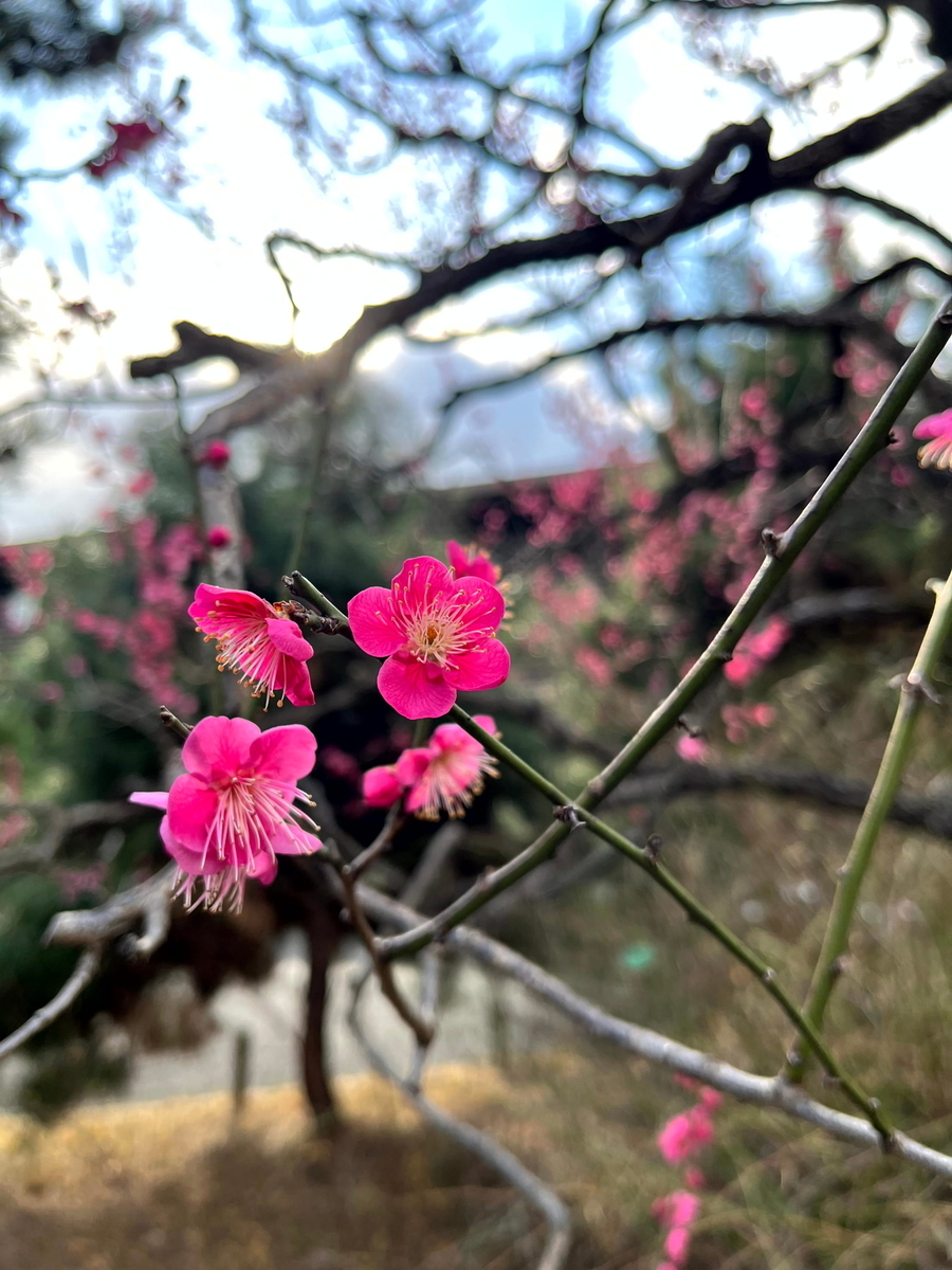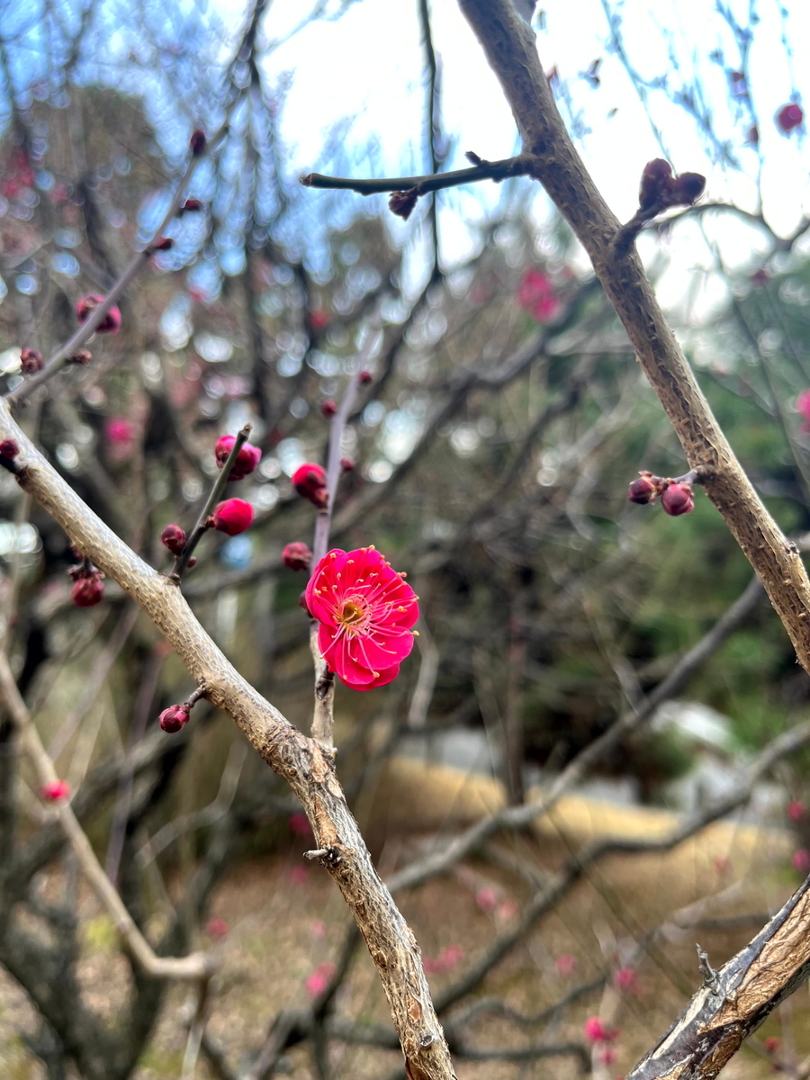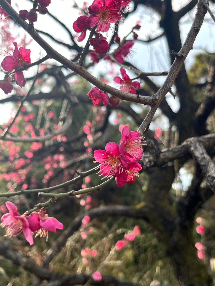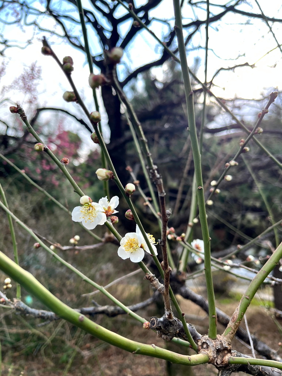 国立劇場の敷地内の梅とか。左上から貴山白、紅千鳥、小田紅、素心蝋梅というらしい。